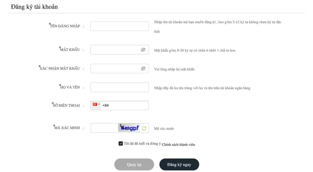 Thông tin tài khoản cần chính xác để dễ dàng nạp/rút tiền sau này.